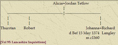 1394 Mar 14 | Alice Tetlow, wife of Jordan de Tetlow. Johanna, dau of above married Richard de Langley 1394 Mar 14.