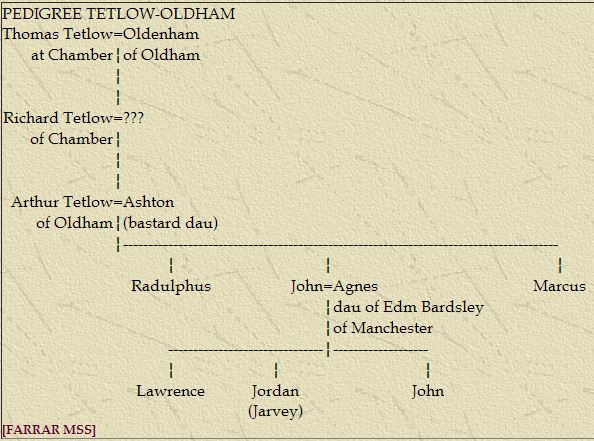 The following references establish the fact that Richard Tetlow of Oldham had brothers named Roger, Hugh and Jordan and that Jordan had a son named Robert:-